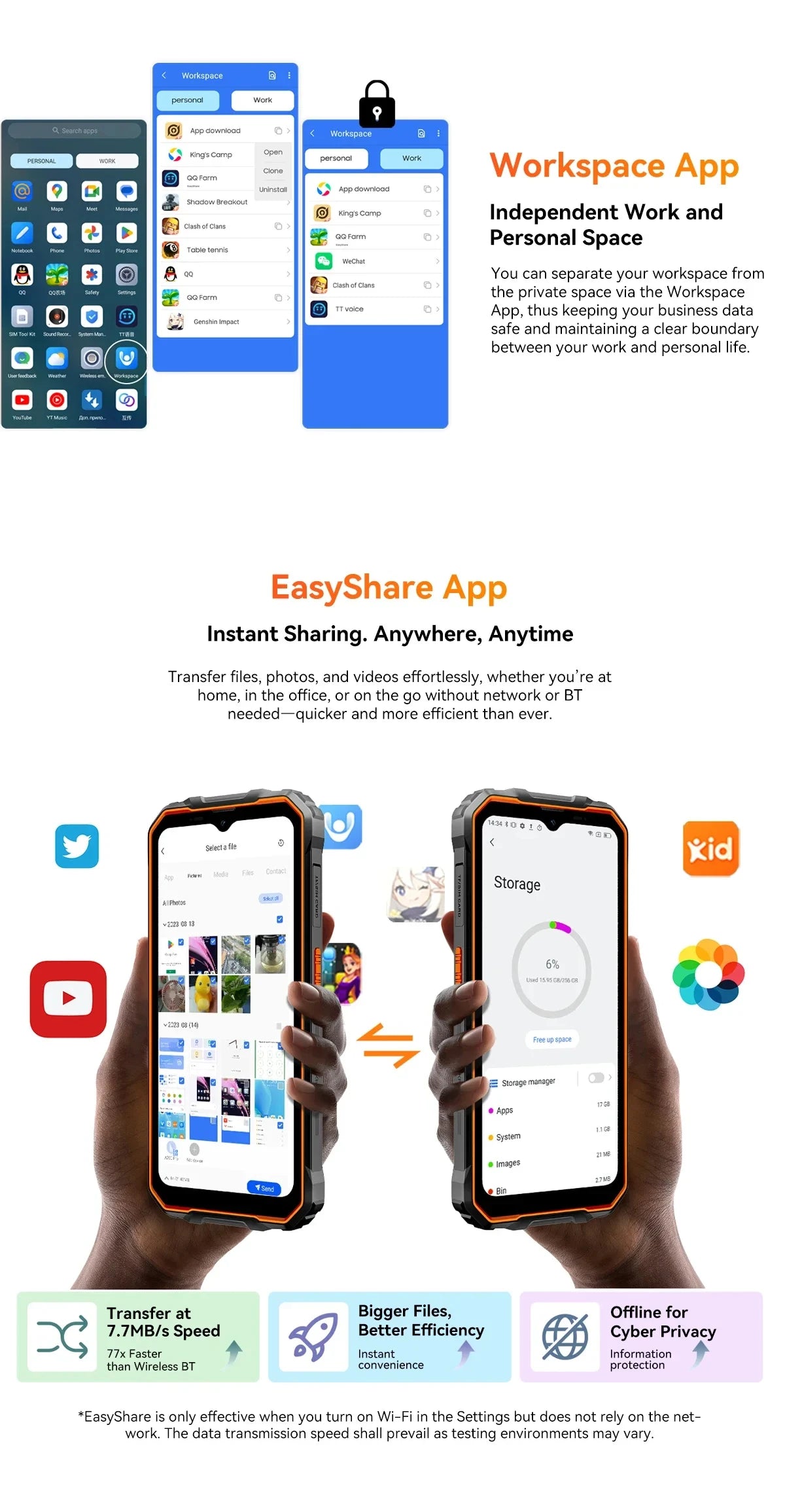 Blackview OSCAL Marine 2 Rugged Phone 8GB RAM 256GB Smartphone AI 11000mAh Battery 6.56 " HD+Display Unisoc T61 Android 15 NFC