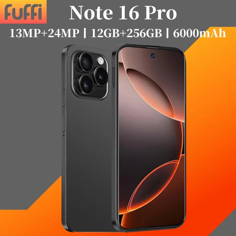 Global Vision 5G Smartphone Android Note 16 Pro 6000mAH 12GB RAM 256G ROM 6.8Inch 1920x1080HD 24+48MP MTK10 Core 4G Mobile Phone